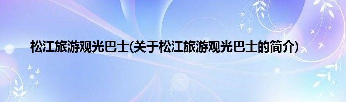 本文关于松江旅游观光巴士的简介就讲解完毕,希望对大家有所帮助。