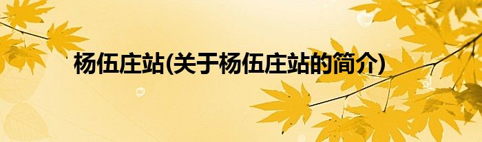 本文关于杨伍庄站的简介就讲解完毕,希望对大家有所帮助。