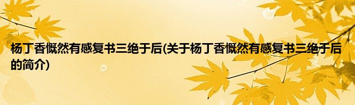 本文关于杨丁香慨然有感复书三绝于后的简介就讲解完毕,希望对大家有所帮助。
