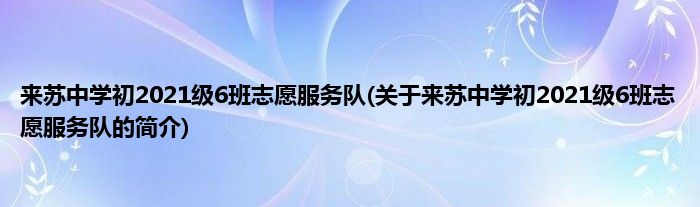 1、 来苏中学初2021级6班志愿服务队是由来苏中学志愿服务队领导下的志愿团体。