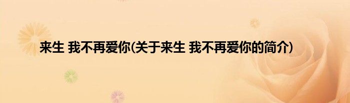 大家好,来生,我不再爱你,关于来生,我不再爱你的简介很多人还不知道,现在让我们一起来看看吧!