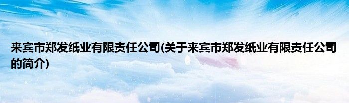 本文关于来宾市郑发纸业有限责任公司的简介就讲解完毕,希望对大家有所帮助。