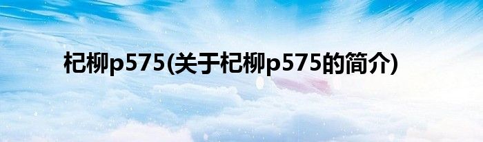 本文关于杞柳p575的简介就讲解完毕,希望对大家有所帮助。