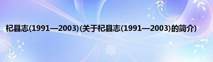 1、 《杞县志(1991~2003)》是杞县人民团结奋斗的历史实录和经验总结。