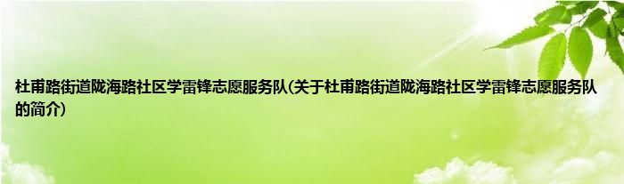 大家好,杜甫路街道陇海路社区学雷锋志愿服务队,关于杜甫路街道陇海路社区学雷锋志愿服务队的简介很多人还不知道,现在让我们一起来看看吧!