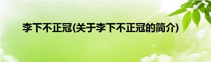大家好,李下不正冠,关于李下不正冠的简介很多人还不知道,现在让我们一起来看看吧! 1、 李下不正冠是中国古代流传下来的俗语。本文关于李下不正冠的简介就讲解完毕,希望对大家有所帮助。