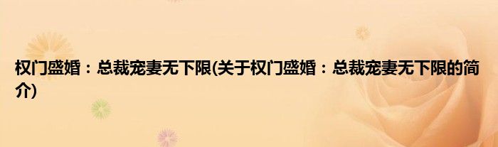本文关于权门盛婚:总裁宠妻无下限的简介就讲解完毕,希望对大家有所帮助。