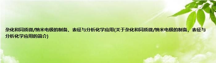 本文关于杂化和同质微/纳米电极的制备、表征与分析化学应用的简介就讲解完毕,希望对大家有所帮助。