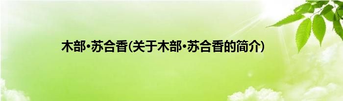 大家好,木部·苏合香,关于木部·苏合香的简介很多人还不知道,现在让我们一起来看看吧!