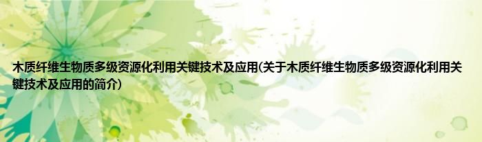 本文关于木质纤维生物质多级资源化利用关键技术及应用的简介就讲解完毕,希望对大家有所帮助。