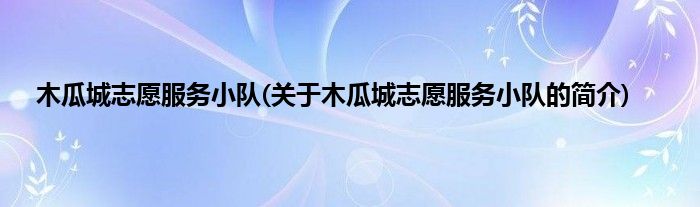 大家好,木瓜城志愿服务小队,关于木瓜城志愿服务小队的简介很多人还不知道,现在让我们一起来看看吧!