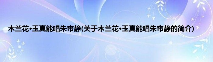 大家好,木兰花·玉真能唱朱帘静,关于木兰花·玉真能唱朱帘静的简介很多人还不知道,现在让我们一起来看看吧!