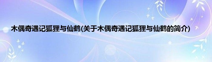 本文关于木偶奇遇记狐狸与仙鹤的简介就讲解完毕,希望对大家有所帮助。