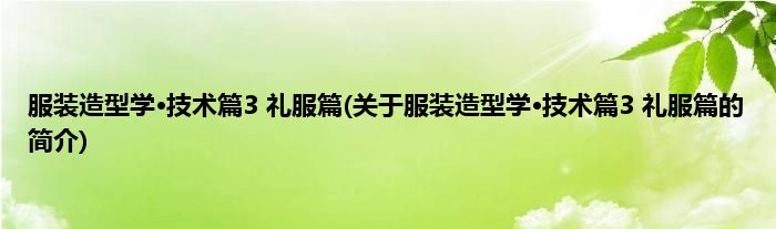 1、 《服装造型学·技术篇3(礼服篇)》是2006年3月中国纺织出版社出版的图书。