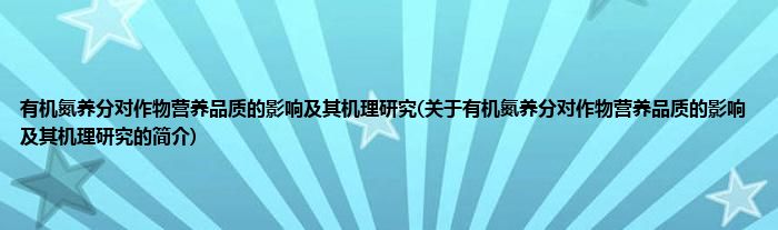 本文关于有机氮养分对作物营养品质的影响及其机理研究的简介就讲解完毕,希望对大家有所帮助。