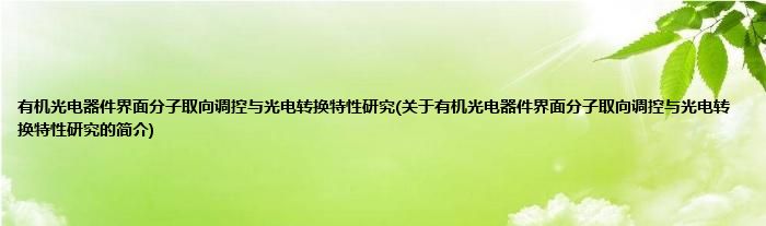 大家好,有机光电器件界面分子取向调控与光电转换特性研究,关于有机光电器件界面分子取向调控与光电转换特性研究的简介很多人还不知道,现在让我们一起来看看吧!