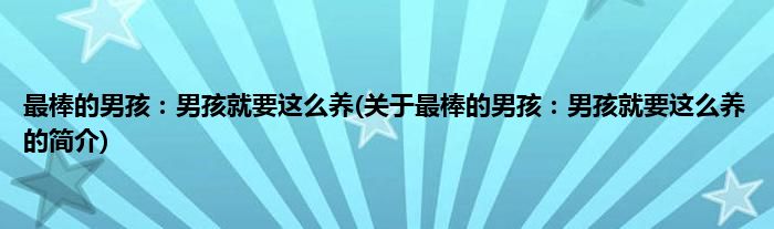 大家好,最棒的男孩:男孩就要这么养,关于最棒的男孩:男孩就要这么养的简介很多人还不知道,现在让我们一起来看看吧!