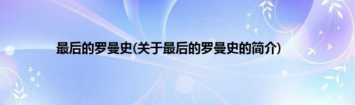 大家好,最后的罗曼史,关于最后的罗曼史的简介很多人还不知道,现在让我们一起来看看吧!