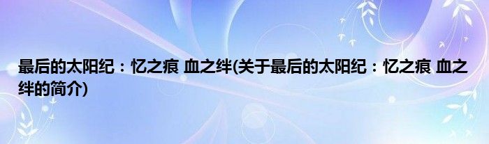 大家好,最后的太阳纪:忆之痕,血之绊,关于最后的太阳纪:忆之痕,血之绊的简介很多人还不知道,现在让我们一起来看看吧!