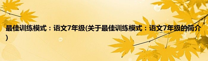 本文关于最佳训练模式:语文7年级的简介就讲解完毕,希望对大家有所帮助。