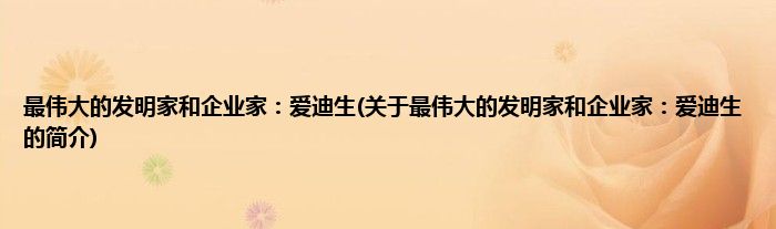 本文关于最伟大的发明家和企业家:爱迪生的简介就讲解完毕,希望对大家有所帮助。