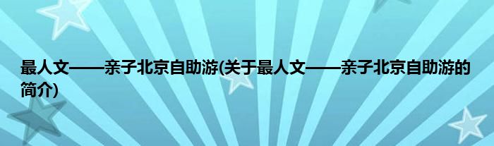 大家好,最人文——亲子北京自助游,关于最人文——亲子北京自助游的简介很多人还不知道,现在让我们一起来看看吧!