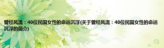 本文关于曾经风流:40位民国女性的命运沉浮的简介就讲解完毕,希望对大家有所帮助。