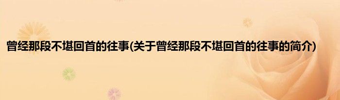 大家好,曾经那段不堪回首的往事,关于曾经那段不堪回首的往事的简介很多人还不知道,现在让我们一起来看看吧!