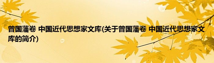 本文关于曾国藩卷 中国近代思想家文库的简介就讲解完毕,希望对大家有所帮助。