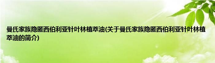 本文关于曼氏家族隐匿西伯利亚针叶林植萃油的简介就讲解完毕,希望对大家有所帮助。