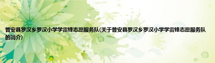 本文关于普安县罗汉乡罗汉小学学雷锋志愿服务队的简介就讲解完毕,希望对大家有所帮助。