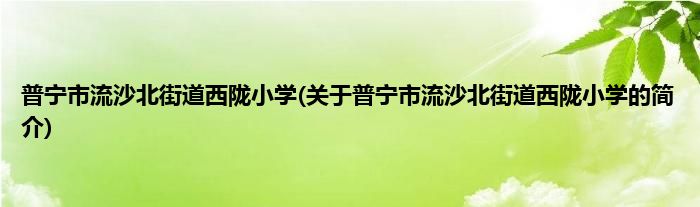 本文关于普宁市流沙北街道西陇小学的简介就讲解完毕,希望对大家有所帮助。