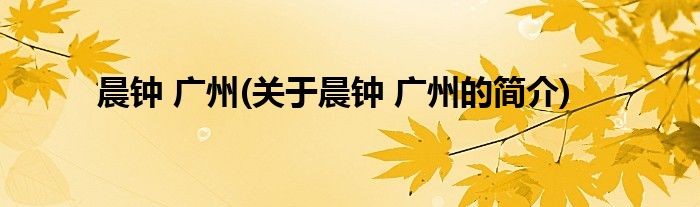 大家好,晨钟 广州,关于晨钟 广州的简介很多人还不知道,现在让我们一起来看看吧!