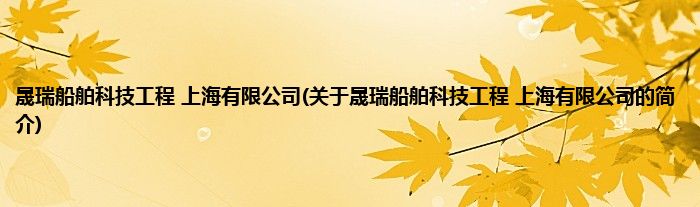 本文关于晟瑞船舶科技工程 上海有限公司的简介就讲解完毕,希望对大家有所帮助。