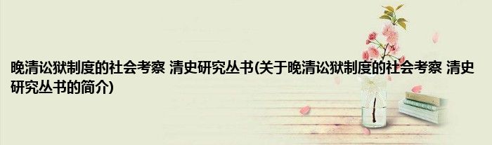 大家好,晚清讼狱制度的社会考察 清史研究丛书,关于晚清讼狱制度的社会考察 清史研究丛书的简介很多人还不知道,现在让我们一起来看看吧!