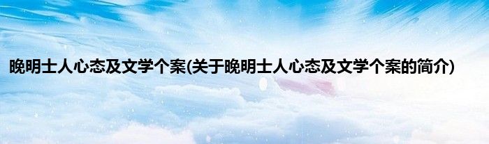 本文关于晚明士人心态及文学个案的简介就讲解完毕,希望对大家有所帮助。