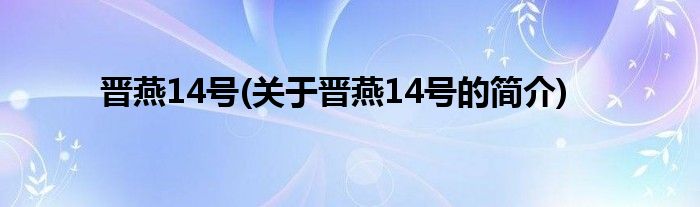 大家好,晋燕14号,关于晋燕14号的简介很多人还不知道,现在让我们一起来看看吧!