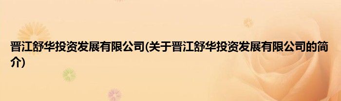本文关于晋江舒华投资发展有限公司的简介就讲解完毕,希望对大家有所帮助。