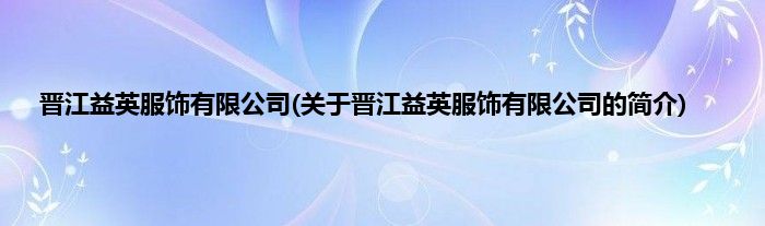 本文关于晋江益英服饰有限公司的简介就讲解完毕,希望对大家有所帮助。