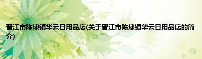 本文关于晋江市陈埭镇华云日用品店的简介就讲解完毕,希望对大家有所帮助。