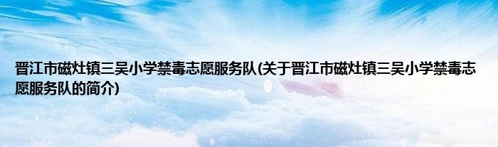1、 晋江市磁灶镇三吴小学禁毒志愿服务队是由福建禁毒志愿者总队领导下的志愿团体。