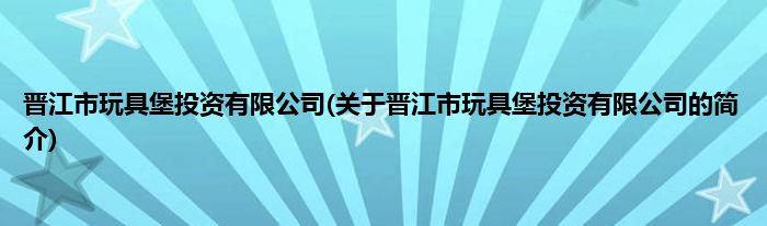 本文关于晋江市玩具堡投资有限公司的简介就讲解完毕,希望对大家有所帮助。