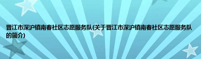 本文关于晋江市深沪镇南春社区志愿服务队的简介就讲解完毕,希望对大家有所帮助。