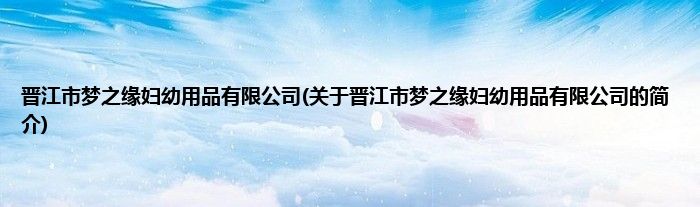 本文关于晋江市梦之缘妇幼用品有限公司的简介就讲解完毕,希望对大家有所帮助。