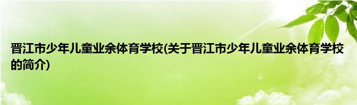 本文关于晋江市少年儿童业余体育学校的简介就讲解完毕,希望对大家有所帮助。