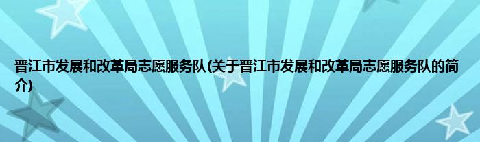 大家好,晋江市发展和改革局志愿服务队,关于晋江市发展和改革局志愿服务队的简介很多人还不知道,现在让我们一起来看看吧!