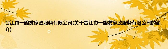 本文关于晋江市一路发家政服务有限公司的简介就讲解完毕,希望对大家有所帮助。