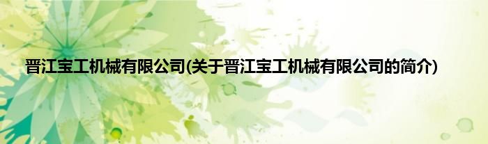 本文关于晋江宝工机械有限公司的简介就讲解完毕,希望对大家有所帮助。