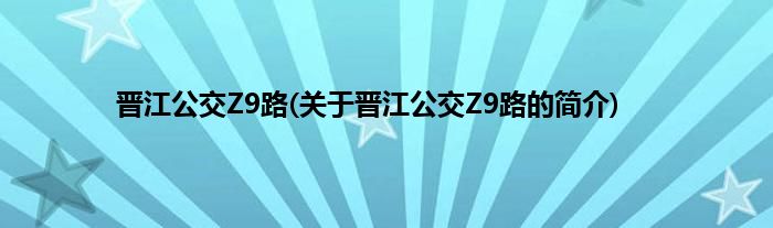 大家好,晋江公交Z9路,关于晋江公交Z9路的简介很多人还不知道,现在让我们一起来看看吧!