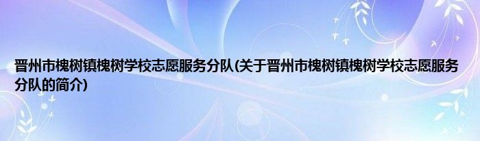 本文关于晋州市槐树镇槐树学校志愿服务分队的简介就讲解完毕,希望对大家有所帮助。